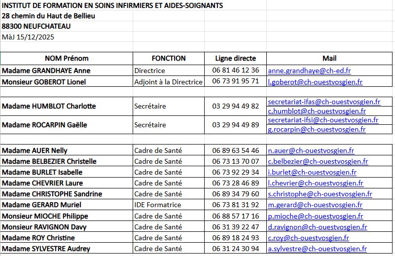 @ : secretariat-ifsi@ch-ouestvosgien.fr